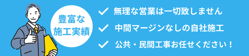 公共工事では、限られた工期にもスムーズに対応できる体制を整えています。